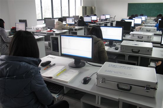 主要设备:TI-C5000&C2000DSP综合实验箱25台、S3C2410 ARM9嵌入式实验箱25台、实验箱配套模块10套(89S51单片机CPU板、通信综合模块、对象综合模块、热敏电阻、温度开关、数字温度传感器模块、红外传感器模块、8位并行AD/DA模、7279键盘显示模块)、DM6446开发套件1套、实验室电脑50台、实验台50张、数字万用表25台